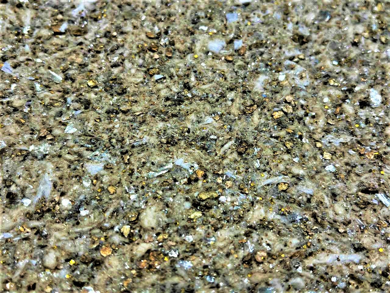 Feito a partir de fibra de algodão, minerais nobres e brilho de composto acrílico metalizado.